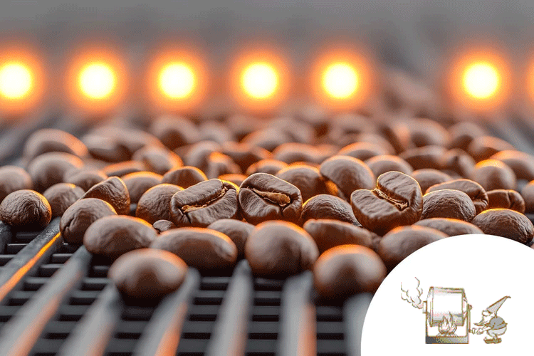 当店では、「遠赤外線焙煎機」を使用して焙煎を行っております。遠赤外線のもつ「物質の分子を振動させる働き」により、一般的な熱焙煎機と比べ、じっくりと豆の内部まで加熱することができ、芯からふっくら香り高いコーヒー・カカオを焙煎することができます。