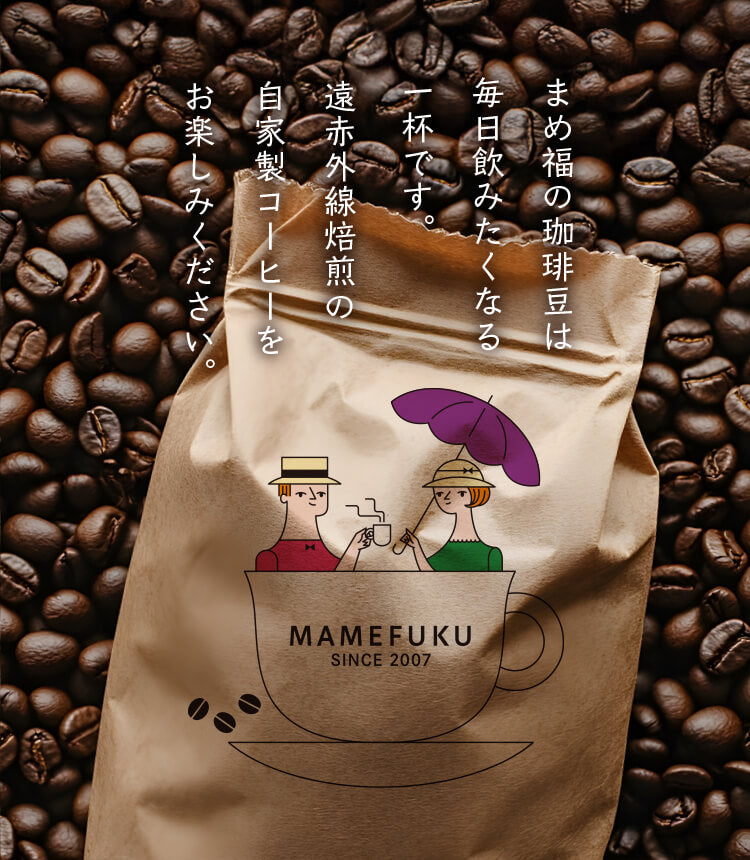 ①遠赤外線加熱で、豆の繊維を壊さず、豆本来の味を閉じ込め、香り長持ち。